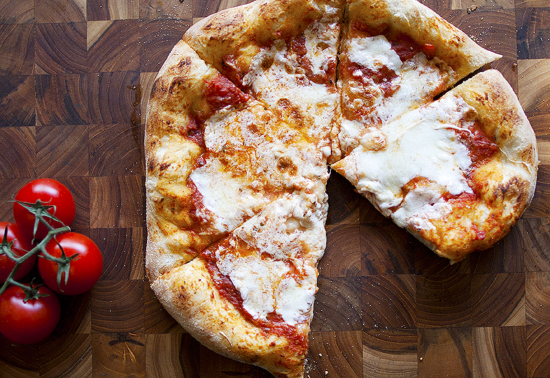 Be aware of some sourdough dynamics here. The less-used your starter, the more liquid on top, the sourer it's likely to be; using a starter that hasn't been fed for weeks will yield a pizza crust that rises slowly, and tastes quite tangy. This type of crust is handy when you want to make the dough in the morning, and have pizza ready for dinner. On the other hand, a starter that's fed regularly will yield a less-sour crust, one that will rise more quickly. This is a great "weekend" crust, as you can shape it at 8 a.m., and have pizza for lunch.
